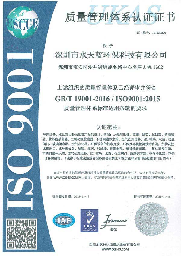 深圳市水天藍環保科技有限公司是一家專業從事于水處理耗材、水處理設備及系統的設計、制造、安裝、調試、技術開發和配套材料銷售的專業水處理高科技企業。公司一直奉行“技術創新以科技為中心,設備生產以質量為中心,售后服務以用戶為中心”的宗旨。努力為廣大顧客提供性價比更佳,質量更優,服務更全的產品。深圳市水天藍環??萍加邢薰菊脚c東麗集團合作,成為東麗集團在中國地區合作供應商。
